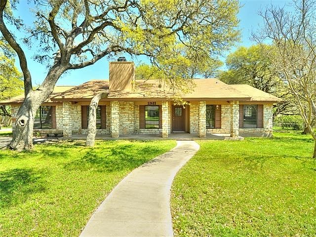 Recently renovated home on large half acre lot in South Austin! Conveniently located to Hwy I-35. Living room features include vaulted ceilings, brick fireplace, and a built-in bookcase. The kitchen has a breakfast area, center island, tile counters, and a built in desk. Other bonus items include an office, plus a large gameroom with tile flooring. Master offers a private bath with cultured marble counters, and lots of storage for linens. Designer paint colors, lots of light, and a covered porch!
