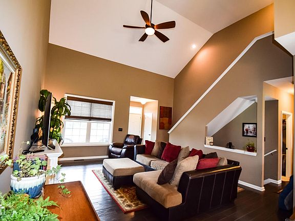 Welcome to this beautiful two-story home situated in the lovely family friendly neighborhood of Poplar Lakes that is directly across from lake. This elegant home features 3 bedroom and 2 1/2 bathrooms with an unfinished basement ready to be completed to your needs. When you walk through the front door you are greeted with awesome great room with vaulted ceilings, lots of room, and beautiful hardwood floors. The elegant open kitchen includes tiered upgraded cabinetry, crown molding, and recessed lighting and lovely arched cut-outs. The dining is very nice and large enough to accommodate a large table. There is a loft that overlooks the 2 Story great room. The large first-floor owner's suite includes a large walk in closet and a private bath with 4ft shower, private toilet area, and