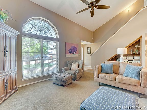 OFFER deadline, Tuesday the 18th at 5 pm. Park like setting with a beautifully updated and immaculately kept 2 story home in Elm Creek Estates in the heart of Owasso. This home has 3 bedrooms with a finished attic flex space that currently serves as a theater room and/or office/home school setting. 2 updated bathrooms, both with double sinks. The new screened in porch is where you will want to spend your evenings enjoying the beautiful backyard with mature trees, shed, pergola, raised gardening beds and manicured lawn. Full irrigation system for the yard is a big upgrade. The kitchen was fully remodeled in 2011 with real wood cabinets, granite countertops, stone backsplash, undermount sink, upgraded plumbing fixtures and stainless steel appliances. The roof is 2 only years old. The home has an awesome 2 story living room with brick hearth and wood burning fireplace and built in functional shelving under the stairs. Also, this home sits only 1 block from the lovely Elm Creek Park with pond, walking trails and new playground! This one is calling your name. Such a serene setting, you will love it!