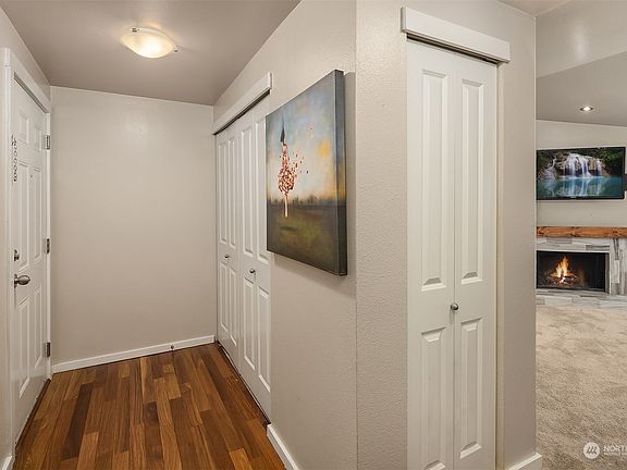 Welcome to the beautiful & highly sought after gated community of Bluegrass Condominiums. This must-see spacious top floor unit is fully updated & features cathedral ceilings, recessed lighting, 2 bedrooms & 2 full baths, granite counters, new stainless appliances, new carpet, wood burning fireplace, new full size washer/dryer, generous deck w/ storage closet & 2 parking spaces (1 covered). This unit backs to a green belt for ultimate privacy. Community offers manicured landscaping, a clubhouse with kitchen & plenty of room to entertain, gym, game room with pool table, sports court, outdoor pool and hot tub. Convenient location near transit, Boeing, Paine field, Alderwood, I-5 and I-405. Pets welcome, absolutely turn-key and move in ready!