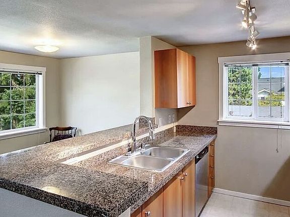 3 bedroom, 2 bathroom unit with private garage and carport. Beautifully updated with high end finishes and fixtures. Kitchen with Quartz countertops, newer cabinet fronts with pull out shelves. Newer appliances and hardware. Living room with wood burning fireplace and dining room with access to deck. Baths with newer vanities, fixtures, tile surround and mirrors. Newer carpet throughout. Tiled kitchen, baths and entry. Large Primary bedroom with updated full bath and walk in closet with built ins. Two more bedrooms, full bathroom and full size laundry. Large deck with storage closet. Complex with club house, gym and outdoor pool. Easy commute to I-5, Park N Ride, Boeing Freeway and shopping. NO Pets 2 parking spaces included in rent. second floor unit gated community MOVE-IN COSTS: We collect a full month's rent upon possession and will pro-rate the second month. The full Security deposit is required at move-in. The base Security deposit equals one month's rent and can be more if approved with a pet and an Adverse approval. $250.00 one-time lease administration fee $15.00 monthly administration fee $43.95/month Resident Benefit Package Tenant is responsible for all utilities and yard maintenance. All residents are enrolled in the Resident Benefits Package (RBP) for $43.95/month which includes liability insurance, credit building to help boost the resident's credit score with timely rent payments, up to $1M Identity Theft Protection, HVAC air filter delivery (for applicable properties), move-in concierge service making utility connection and home service setup a breeze during your move-in, our best-in-class resident rewards program and much more! More details upon application.