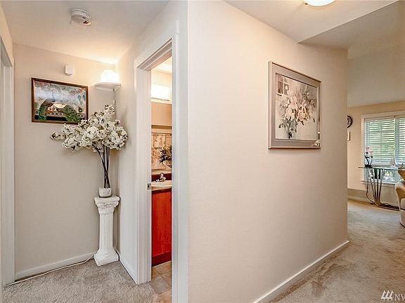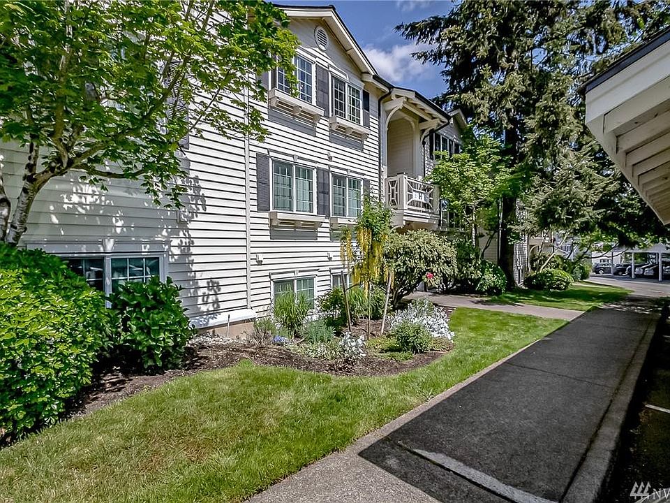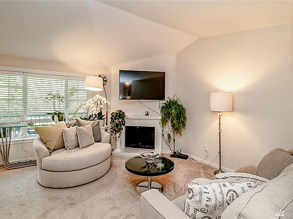 Light & bright top-floor unit in gated community with LOW HOA dues & resort-style amenities. This FHA-approved condo features open floor plan with light-filled living spaces, vaulted ceilings, 2 lrg BRs, 2 ba, living rm w/wood frpl, kitchen w/ breakfast bar, dining area leads out to private balcony w/eastern views. Carport + 1 assigned space. Well managed HOA. Dues cover water, sewer, garbage, clubhouse, gym, billiards, hot tub, pool, and more. Close to I-5, Boeing, shopping, Mukilteo SD.