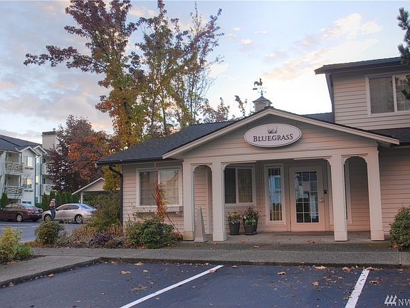 Move in ready condo with landscaped private yard in exclusive Gated Bluegrass Community. Ground floor 5 stair entrance & level back entrance. Two BR's with 2 full baths. New High quality carpet & moisture proof laminate installed. New glass top stove. Custom paint, trim, light fixtures. Clubhouse, Pool,wading pool & hot tub, full kitchen, pool table, exercise room. Ext basketball court. Easy access to I-5, Boeing & amenities. Includes W/D. HOA mows all grass. two pking spaces-Carport, open.