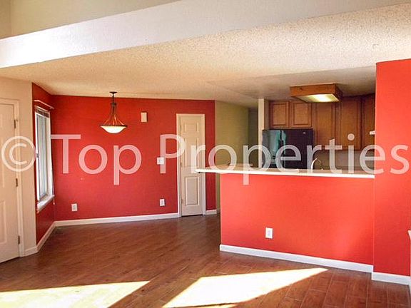 Spacious condo with lots of light in excellent move in condition. Easy access to lots of shopping and dining and short drive to I225 and new light rail station. Open plan kitchen with breakfast bar, large living room with vaulted ceiling, new wood style tile floors and wood burning fireplace. Bedrooms are nicely carpeted with large closets, ceiling fans and the master has en suite bathroom. Unit includes its own garage with automatic opener. Premium washer dryer and water included. Call Top Properties today for a private showing.