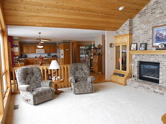 Enjoy living on Maple Lake year round! Lake home situated on approx 1 acre w/views from every rm. 150' of water frontage. Cathedral ceiling, flr to ceiling windows, hrdwd flrs in kit/LR, custom oak cabs, 2 gas fplc, main flr mstr BR & BA, lower level walkout, dual heating system, air-to-air exchanger, dbl att heated/ins garage + det heated/ins garage. This is the perfect retreat from city life!