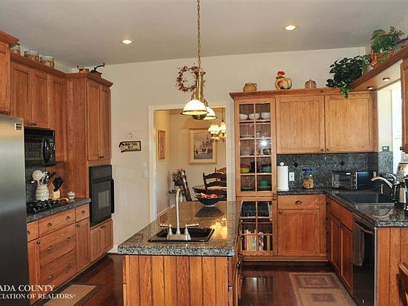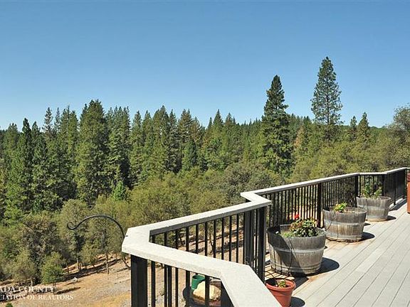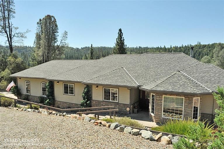 Beautiful sunset views from this impeccable one story custom home in Mountain Lake Estates! Loads of natural sunlight from every window on this private 6+ acre parcel. Home is like brand new with spacious living room with vaulted ceilings and romantic wood stove, huge entertainment kitchen with custom hickory cabinets and loads of storage, big master suite and wonderful master bath suite. Downstairs basements areas offer over 1,000 square feet wi th room for guest quarters (including plumbing), family room or home office business. Great Southern exposure for vineyard, orchard and great solar exposure. Become self efficient on your own property and keep your property value in this lovely high-end neighborhood! Built in book shelves, office and beautiful back deck with hot tub. Low maintenance landscaping and very quiet street. Easy access to historic Nevada City and Grass Valley!