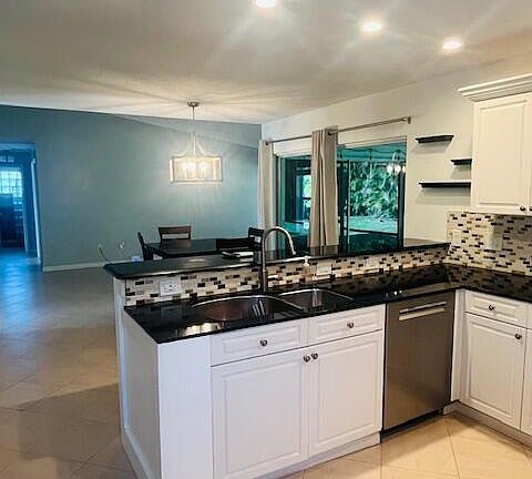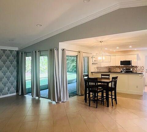 Lovely 3 bedroom, 2 bath single family home located in cul-de-sac. Light and bright home. Large, screened porch overlooking peaceful backyard full of Areca palms. Garage can be used for storage (it will NOT fit a vehicle) and separate laundry room. Lawn/pest control included.