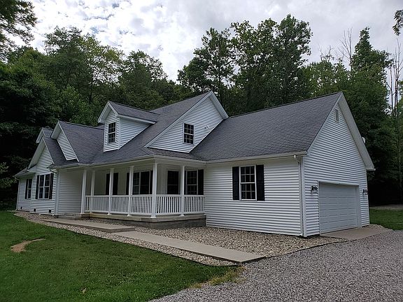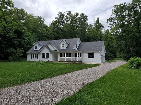 Great country setting on the west side of Columbus, located on a beautiful 18 wooded acres. Only 10 minutes (3 miles) from I-65. Main floor includes: Master Bedroom 15x13.5 , Master bathroom with double vanity and 5x3 walk in shower, 8x6 walk in closet. Bedroom 2 12x13 with 7x6 walk in closet. Bedroom 3 12x11.6 with double door closet. Bathroom 2 is off the hallway, includes double vanity. The rest of the main floor showcases the open concept 18x8.5 entry and dining area + coat closet, combined with the19x19 living room and 13x8 kitchen with large 6x4 pantry. Nice wood stove installed in the living room. Laundry room / mud room with washer, dryer and utility sink located just between the kitchen and garage. First floor is primarily wood other than the baths. Upstairs you find 2 large open areas with a bathroom in the center. Both areas have large dormers (80"x52") rhat make nice reading nooks. Stairs and upstairs are carpeted. Attached 2.5 car garage, great front porch for sitting, and a small rear patio as well. Large 54x48 gravel parking area in rear Invisible dog fence installed around the home. All appliances included, new dryer, and disposal, water heater less that 2 years old. Seller does need assistance selling. Please text or call for an appt.