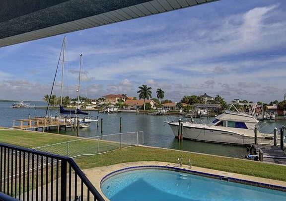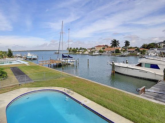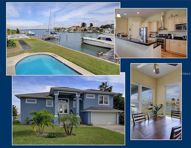 AWC - Taking Backup Offers This newer 2012 waterfront pool home offers a protected deep water dock on a canal with near views of Boca Ciega Bay and quick access to John's Pass and the Gulf of Mexico. The generous open great room, with adjoining covered lanai overlooking the pool, features a dining area and a granite and stainless kitchen with wood cabinets, breakfast bar, wet bar, walk-in pantry and gas range with dual ovens. The split master bedroom suite offers a sitting or office area, walk-in closet and great bath including an oversized shower with three heads, dual sink vanity and enclosed water closet. There is a second master suite on the other side of the house with walk-in closet and private bath. The split third bedroom adjoins a hall bath. The utility room has heavily insulated sound proof walls. This fully block home was constructed on 39 50' pilings in lime rock and offers impact windows, tankless water heater and a huge 1,025 square foot Multi-car garage.