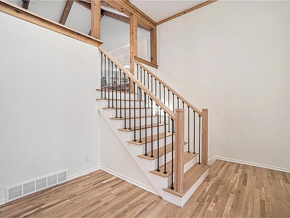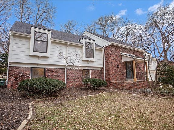 Absolutely STUNNING top-to-bottom renovation in coveted Leawood South. Virtually everything is brand new, including custom soft-close kitchen cabinets, quartz countertops, an oversized kitchen island, stainless steel top-of-the-line appliances, gas range, peaceful bar seating with a picture window overlooking the expansive backyard, beautiful white oak hardwood floors, custom tiled showers, fresh paint inside and out, and a brand-new roof just installed. The main floor features dramatic vaulted ceilings with beautiful, one of a kind rustic beams. The open concept living, kitchen, and dining spaces provide the perfect blend of luxury and natural light with both contemporary and classic appeal. Three of the 4 bedrooms are found on the main floor, including the primary bedroom with luxurious en-suite bathroom and 2 spacious closets. Laundry space is also conveniently located on the main level. The lower level includes the 4th fully conforming bedroom with its own full modern bathroom, along with additional lower-level living space, a contemporary wet bar, and a fun unique entertainment/play area. The 2-car garage is temperature-controlled and the additional unfinished portion of basement offers plenty of additional storage and workspace. Situated close to the Country Club of Leawood and within the award-winning Blue Valley School district, this home is pristine and move-in ready!