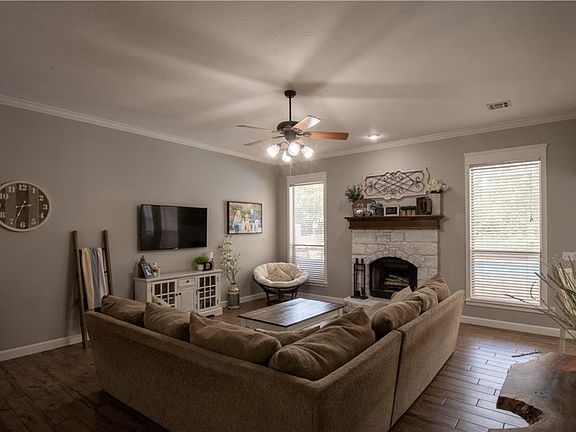 Beautiful MODERN FARMHOUSE w/backyard POOL OASIS on .82 acres! This property is chalked full of gorgeous updates⦠Beyond the foyer is a bright, open living area featuring a handsome stone fireplace. Enjoy entertaining your guests in the spacious kitchen featuring granite counters, glass subway tile backsplash, walk-in pantry, new stainless steel appliances + double ovens! The dining room has a perfect view of the gorgeous backyard & is complete w/a touch of shiplap. Get away from the hustle & bustle in the cozy study boasting a built-in bookshelf & gorgeous wainscoting. The highlights of the private master retreat include a shiplap accent wall w/pendant lighting, jetted tub & separate walk-in shower, double sinks + a HUGE walk-in closet. Rustic wood-like tile floors throughout! Take the party outdoors to the AMAZING backyard pool oasis featuring a HUGE in-ground pool, gorgeous pergola & stunning landscaping. Giant finished outdoor building w/electric. NEW HVAC system! WELCOME HOME!