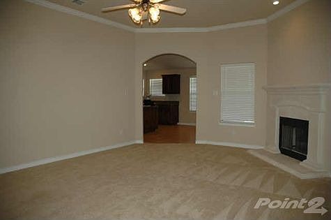 Adorable 3-2-2 with carpet, tile, eat in kitchen. Nice pantry, island, electric range and built in microwave. Large living area with fireplace, carpet and ceiling fan. Split bedrooms walk in closets, decorative lighting, large utility near master and garage. Garage has opener, wood and iron fence in back with large covered patio. Beautiful property!
