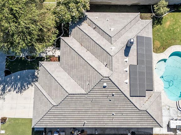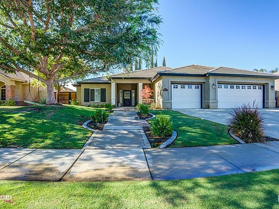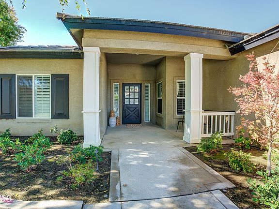 Discover this elegant split-wing home built by Barbara Smith, featuring 4 bedrooms, 2.5 baths, and a spacious 3-car garage. Enjoy the beauty of engineered hardwood flooring, and relax in the expansive living room with a fireplace. The dining area and kitchen boast granite countertops, perfect for both everyday meals and entertaining. The primary bedroom is a true retreat with direct access to the backyard, a full bathroom with double sinks, a separate tub and shower. Step outside to a stunning backyard oasis complete with lush greenery, block walls on both sides, and custom gates for added privacy. The outdoor space is designed for enjoyment, featuring a BBQ area with two grills, fridge, granite countertops, a sparkling pool, and a spa with a newer pool pump. This home blends comfort and style, offering a perfect setting for relaxation and entertaining. There is newer AC, newer sprinkler, olive tree & solar paid off.