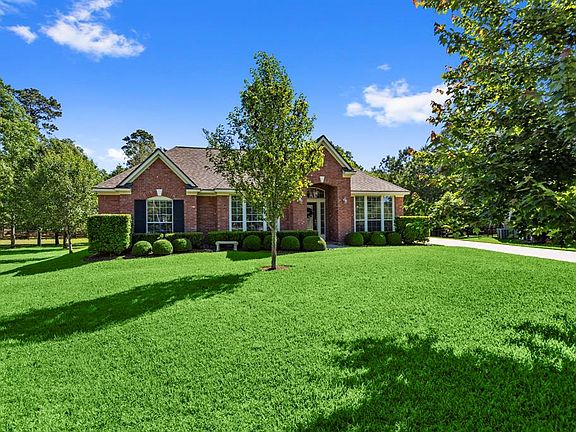 Charming 1-story brick home on almost 1 acre, cul de sac lot in Mostyn Manor in Magnolia, TX with a pool! This one has got it all! Features include wood and tile floors, granite counter tops, pool added in 2012, professional landscaping, water softener, storage building, irrigation system, upgraded kitchen cabinets, upgraded travertine tile floors and granite counter tops, AC (2015), island kitchen with endless counter and cabinet space, bright and cheery breakfast area off kitchen, study, formal dining and more! This gem won't last long, schedule your personal tour today!