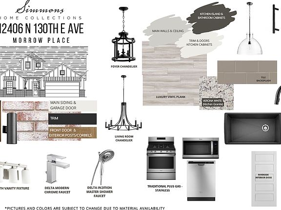 Beckett Farmhouse Floor Plan - 4/2.5/2 - 1 story - A spacious layout from the covered front porch to the relaxing back patio. This home is designed with a giant living room with 10' ceiling showcasing a beautiful matte black chandelier. Luxury vinyl wood flooring throughout the home for a seamless flow. Kitchen has custom built white painted cabinetry to the ceiling, subway tile backsplash, matte black hardware, stylish glass pendant lights above a large granite island w siligranit single bowl sink