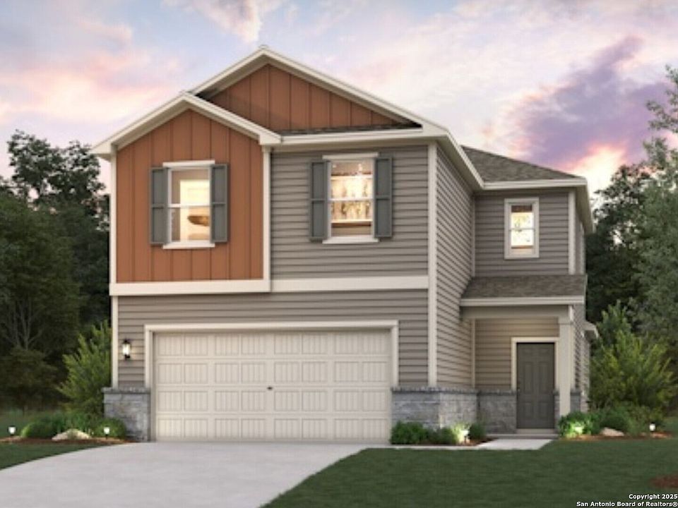 Introducing the Frederick at Spring Creek: a 2,260-square-foot haven that blends functionality with modern living. This two-story home invites gatherings in its first-floor, open-concept great room, home to a living room, dinig area, and a well-equipped kitchen complete with a walk-in pantry and a center island. The owner's suite is nearby, offering a large walk-in closet and a private bath with dual vanities. Upstairs, an open loft adds to the home's spacious feel. Three additional bedrooms and a full bathroom round out the plan. Additional home highlights and upgrades: 36" white kitchen cabinets, quartz countertops and backsplash Luxury wood-look vinyl plank flooring in common areas Stainless-steel appliances Soft water loop upgrade Additional recessed lighting throughout home Covered patio Garage door opener with two remotes Landscape package with sprinkler system Exceptional included features, such as our Century Home Connect smart home package and more!