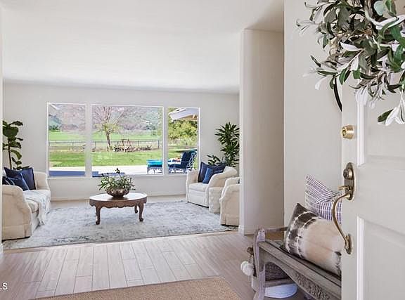 Welcome Home to this wonderful Ranch style VIEW home. Located behind the gates of Rancho Matilija, this home has some of the most magnificent views. Enter into the home and you enjoy the light-filled living room showcasing the mountains. The great room opens to the kitchen and leads out to the backyard. The views are breathtaking with pink sunsets and early morning sunrises. You won't want to miss this home. Bring your creative touches and make this charmer your home for life. With the trail right outside your door, you can walk your dogs, take a hike or ride your horses. Horses are welcome.