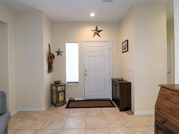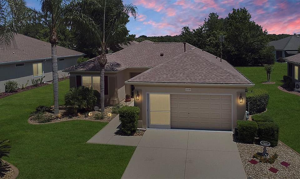 Great curb appeal . Professional landscaping, designer drive/walkway. Better than new. Shingles (2019), Sunsetter Awning (2019), Rewewal by Anderson windows in dining room and both bedrooms (2018), Kitchen Appliances - Refrigerator, GAS STOVE, Dishwasher (2018). Whole house water filtration system (2018), HVAC (2017), Exterior painted (2017), Full sized freezer (2015) and Stone patio (2015). Split bedroom plan, inside laundry room, enclosed lanai (acrylic windows). 2-car garage with privacy screens, utility sink, key-less entry, pull-down stairs & storage, insulated garage door. Located close to the Fitness Center. Golf cart, sleeper sofa in guest room, living room sofa/matching chair, living room chair w/stool and patio table/4 chairs w/umbrella available for sale. See this gem today before it is too late.