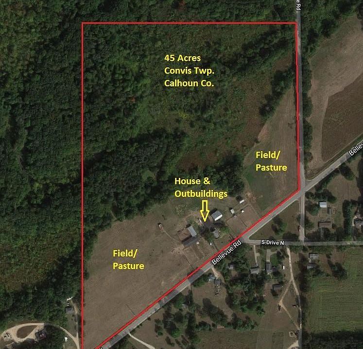 Welcome Home to the Farm!! Located in Calhoun County on a paved road just South of Bellevue sits this great fully operational hobby farm currently all setup for horses. There is a well maintained large farm house with a paved circle driveway and full-time back up generator, huge pole barn with multiple horse stalls that has power & water, several other outbuildings, large already fenced off areas ready for horses and/or livestock if desired, excellent pasture areas for grazing or to plant crops and the best part....water/swampy area along with rolling woods with trails for the outdoor enthusiast! This property has so many options and is just waiting for you to decide what fits you the best! Don't delay and give me a call today for your private tour!! **Information is not warranted or guaranteed and aerial maps are a picture of the property layout and are not deemed to a survey.