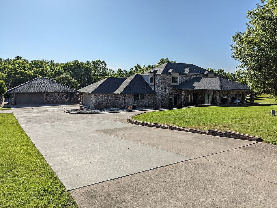 Two-story brick home with two master suites; one up, one down (completely remodeled for handicap accessibility; includes private laundry hook-ups and stubbed-in for kitchenette). Main house consists of 4205 sq ft: 3 bedrooms, 2 full baths, and laundry upstairs. Downstairs has 2 bedrooms, 1.5 baths, kitchen, breakfast nook, family room, sitting area, enormous kitchen, formal dining area, office, and laundry. 520 sq ft attached garage w/ 360 sq ft floored attic space; 2-car portico; 5400 sq ft of driveway, parking, and basketball pad. Separate detached, completely remodeled, 442 sq ft fully-equipped studio apartment space with 500 sq ft garage and 235 sq ft of floored attic space. 40,000 gal salt water pool with waterfall from 600 gal heated spa; cabana includes pump/filter room and separate 100 sq ft storage plus a gazebo. Two secure outbuildings plus large covered storage for equipment and firewood. Hidden parking area for trailer(s).