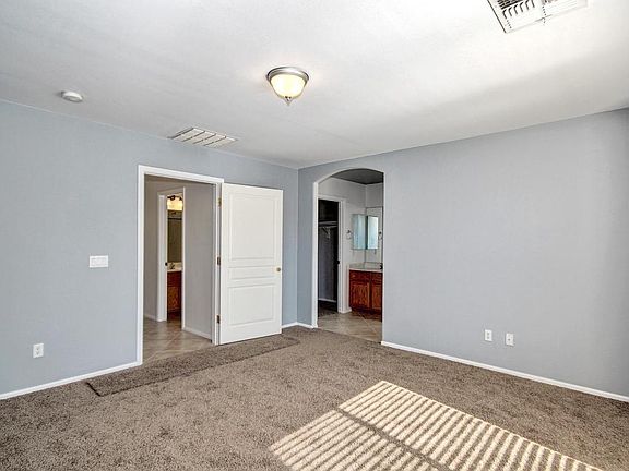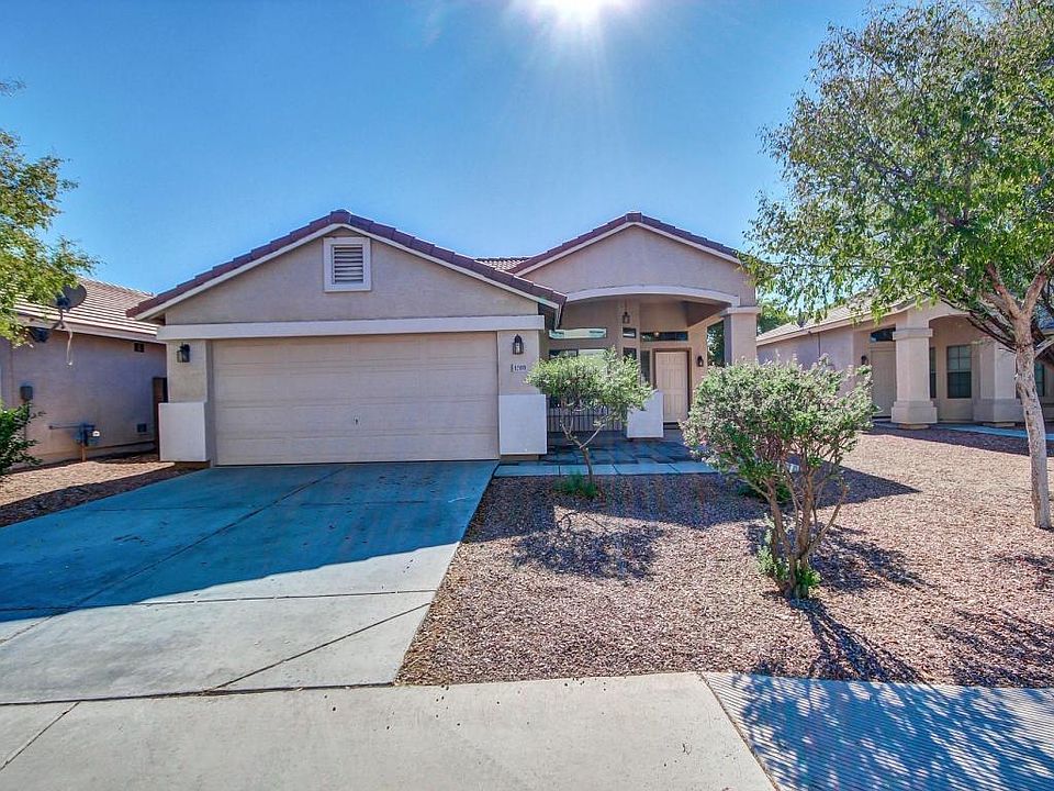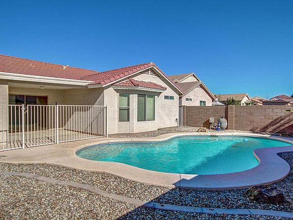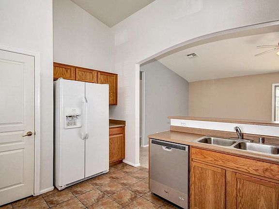 SINGLE STORY WITH POOL Nice move-in ready 3 bedroom, 2 bath with new carpet, tile and paint. New stainless steel kitchen appliances including dishwasher, microwave and smooth top stove. Great floor plan with open living area. This home features large open eat-in kitchen with plenty of cabinets and pantry. Master suite with a walk-in closet, bay window, dual sinks and a full bath in the master bathroom. Other features include vaulted ceilings, inside laundry,upgraded fixtures, covered front and rear patios, desert landscaped low maintenance front yard. Fenced pool with Kool Decking. Convenient to park and freeway. Includes washer, dryer and refrigerator.