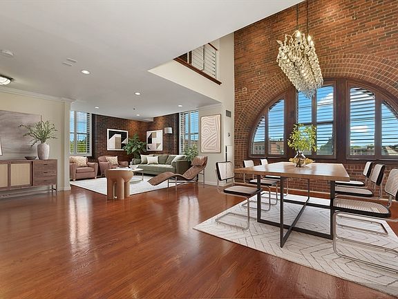 Presenting a rare corner penthouse at Baker Square, a historic former chocolate factory in Lower Mills, where industrial charm meets modern luxury. This stunning two-level, 2,184 sq ft residence boasts 16-ft arched windows framing panoramic Neponset River views, including spectacular sunrises that bathe the space in golden light. Hardwood floors and exposed brick accents complement the open living/dining area, sleek updated kitchen, and en suite bedroom, all enhanced by chic Restoration Hardware lighting. Upstairs, the skylit primary suite offers a walk-in closet and flexible loft space for a lounge or office. Enjoy one garage parking space, one exterior parking space, extra storage, and exclusive amenities, including an indoor pool, fitness center, and riverside patio. Steps from shops, dining, and the Neponset Riverwalk, this penthouse blends historic character with contemporary convenience in a truly unparalleled setting.