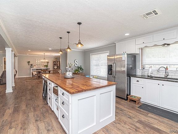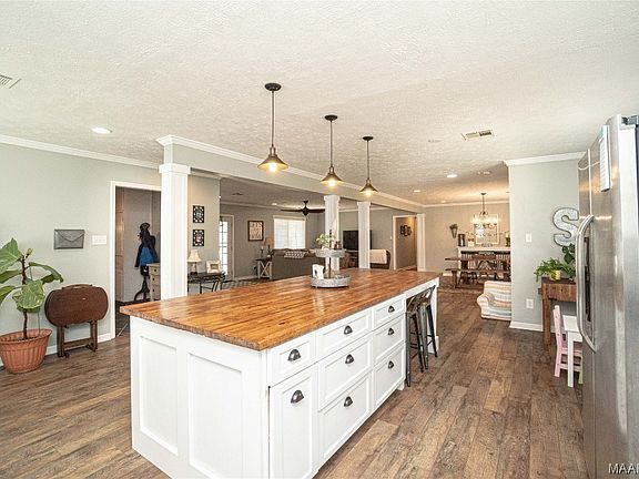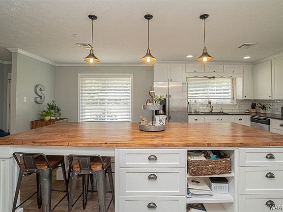 PRATTVILLE BEAUTY almost completely gutted and transformed into a SOUTHERN CHARMER! The remodel created a modern open floorplan. As you enter the front door, you're greeted by a spacious dining area and family room that flow seamlessly into the spacious kitchen, making it easy to entertain guests or keep an eye on kids while cooking dinner. Updates and remodel include - Walls removed to create a large OPEN concept in main family areas. All new paint, all new floors (except guest bath) which included hard tile in laundry room, carport entryway and master bath, laminate hardwood in living room, kitchen and master bath, and new carpet in two bedrooms. New kitchen cabinet doors, countertops, custom island with butcher block top and tons of storage. All new blinds. New windows on front and left side of home. New recessed lighting and new light fixtures throughout. New landscaping. New French doors from family room to the beautiful and private back yard. You will love the outdoor patio, full fence and 2-car carport. You will love the corner lot. This home is located so close to all things in Prattville, including shopping, restaurants, schools, churches and only minutes to Maxwell Air Force Base! This home has it ALL and is truly a SOUTHERN CHARMER!