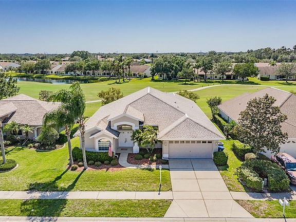 A golf course beauty and rare find! Fourth bedroom set up as a home office overlooking the golf course! Wide, spacious floorplan that is open and airy with neutral color scheme for easy decorating with a beautiful view. The kitchen is bathed in natural light with additional seating at the breakfast bar, high ceilings with recessed lighting and an eat-in area with a large window that views lanai. The family room adjoins the kitchen with sliding glass door to lanai and backyard. Master suite features a vaulted ceiling and direct access to the patio via a sliding glass door; master bath with oversized, step in shower, double vanity and whirlpool tub. All secondary bedrooms are a great size and the separate laundry room features built-in cabinets and access to the two-car garage. Golf course views from the screened-in lania is the perfect place to start or end your day! LIVE THE HERITAGE SPRINGS LIFESTYLE - Resort style living at its absolute finest! Clubhouse with restaurant and bar, fitness, tennis, golf, cards, billiards, dancing and more! SUPERB TRINITY LOCATION, CLOSE TO DINING, SHOPPING, MEDICAL AND AIRPORT!