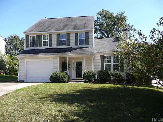 Wonderful home on a corner lot close to everything in Wake Forest. Large family rm with a beautiful fireplace and sliding glass doors to the private back patio and fenced in yards. Big bright kitchen w/New Electric Range. Upstairs has 3 bedrooms including a large master suite w/WIC, 2 vanity sinks and cathedral ceilings in the bedroom. New water heater just installed in the home