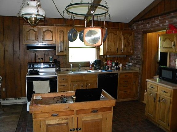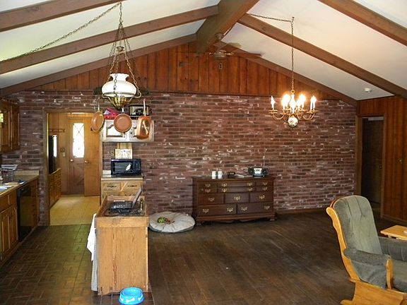 Secluded and private. Totally wooded perimeter! Excellent location just outside of town ! 3-4 BR/1.5 Bath ranch home on 1.99 acres. Huge living room/kitchen combo with stone fireplace. 1 car garage under, wood deck, good sized yard and more !!