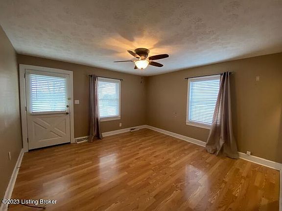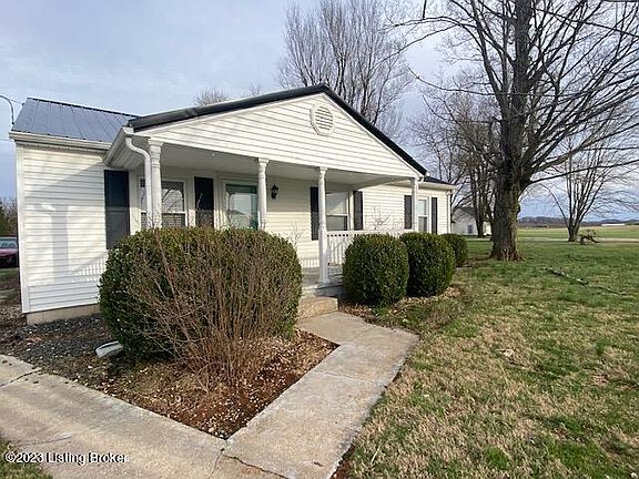 Quiet country atmosphere awaits you with this neat & tidy three bedroom vinyl ranch style home with 24x32 detached metal garage located at 1257 Bellwood Road in Bardstown, Kentucky. This great home offers 1246 sq. ft. of comfortable living space with laminate, carpeting & vinyl flooring throughout & great metal roof. Covered porch greets you as you enter into the comfortable Living Room with laminate wood flooring, arched doorway & decorative built in shelving. The Kitchen & Dining Combo offers nice white cabinetry and comes equipped with a full complement of black appliances including range/oven, refrigerator, dishwasher & microwave. Nice Mudroom is an added bonus. Home offers two carpeted bedrooms & third bedroom with nice laminate wood flooring. Full Hall Bath completes the interior of the home. Venture outdoors to kick back & relax on the large rear patio. Nice, detached metal garage offers water, electric & wood stove. Vinyl sided outbuilding offers additional storage. All located on large one acre lot in the country only minutes from all the amenities that historic Bardstown, Ky has to offer