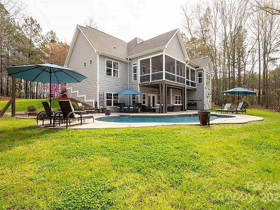 Welcome HOME to this beautiful custom-built home nestled on 6.68 acres of privacy and serenity. Walking in the front door will WOW you! The custom features throughout include coffered ceilings in the dining area and living room, crown molding, built-ins galore, and custom rustic wood accents on the entry ceiling and office wall. This home exudes charm and luxury! The kitchen showcases SS appliances, a farmhouse island sink, custom white cabinets, and granite tops. The primary suite is simply stunning with its shiplap accented tray ceiling, and rustic barn door entry into the impressive en-suite bath. The outdoor living spaces take your breath, with multiple covered porches overlooking your backyard oasis of an inground pool. But wait! There's More! The full basement is wired, plumbed, with ductwork in place, and ready for you to add the finishing touches for an additional 2100 sq ft of living space! This one truly offers it all!