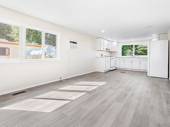 Stunning, completely remodeled home in 55+ River Haven Park. This home has been gone through from top to bottom and is in better than new condition! All the new stuff includes roof, cabinets and vanities, appliances, counters, laminate floors throughout, LED lights, electrical outlets and light switches, int. & ext. paint, closet doors, all bathroom fixtures, air conditioners, ext. siding, deck with accessible ramp. This unit looks and feels brand new. This is a great opportunity to move into a like new home and not have to worry about maintenance or upkeep. Located just minutes to downtown Grants Pass and walking distance to the river. Take a look through the pictures then call for an appointment to see this quality home. Space rent is very affordable at $370 per month.