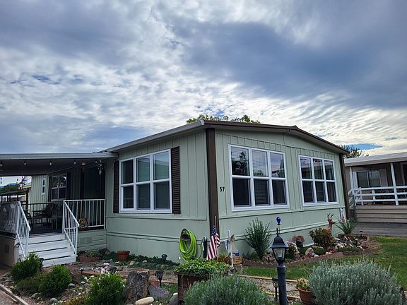 Very nice 1973, dbl-wd, 2bd, 2ba, with yard, shed and long attached covered carport. This spacious mobile has been recently retrofitted for energy efficiency by UCAN. New dbl-pane, vinyl-frame windows throughout, new Insulation under and In celling, all vents and ducts checked for leakage and there are 2 new toilets and new stairs front and back. The primary suite has large 2-rm bathroom, the dining room has built-in hutch and there Is a large front porch area semi-enclosed for sitting. This home Is located In Riverhaven Mobile Park on Dowell Rd, #57, and near bus routes and all services.