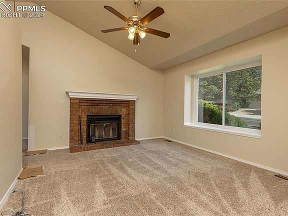 Looking for main level living? This 3BR/2BA rancher in Cheyenne Meadows is MOVE-IN READY! This home features a welcoming Living Room with a cozy brick fireplace and vaulted ceilings; an eat-in Kitchen with counter bar and walk-out; a separate Dining Room; the Primary Bedroom with an en suite bath and walk-in closet; two additional Bedrooms; and a full Bath. Additional features include a 2-car garage/mountain range views/fenced backyard/NEW CARPET/NEW INTERIOR PAINT! Close to schools, shopping, dining, and parks! Convenient access to the I-25 and 115 corridors! Schedule a showing today!