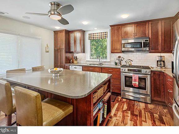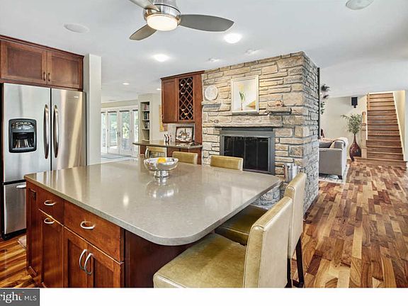 Modern, spacious and completely renovated property on a quiet street in the desirable Penn Valley section of Lower Merion Township. Semi-open floor plan with back-to-back dual gas fireplaces located in center of house between living room and kitchen surrounded by beautiful stonework. Wonderful layout for entertaining. Eat-in kitchen with large center island for prep and serving, plenty of wood cabinets for storage, quartz counter tops, ceramic subway tile backsplash, and upgraded stainless steel appliances, including convection microwave and oven with warming drawer. Beautiful walnut hard wood floors flow through living room and kitchen. Recessed and accent lighting in both rooms. Built-in bookcases frame the entrance to the spacious dining room, which is visible from the kitchen and living room, with stone tile flooring and a beautiful candle chandelier. Large windows frame the living room and dining room, providing lots of natural light. Multiple sets of French doors off of the living room and dining room provide access to the backyard patios and in-ground gas heated pool. Lovely powder room with pocket door is off to the side of the kitchen and dining room. Master bedroom suite with closet system, dressing area, separate soaking tub from large glass shower with body jets, as well as, second bedroom with hall bath, linen closet, as well as, laundry room and home office are located on the opposite side of the house from the living/entertaining area. Third bedroom which has just been completely upgraded in 2018 is located on second floor with its own bath and includes motorized skylights with blinds for lots of natural light and fresh air. All bedrooms have bamboo floors installed. All baths contain tile floors and floor-to-ceiling tile in the shower area. The whole house is wired with CAT-5/6 for smart home capability. In-ceiling and in-wall speakers in almost all rooms. Security system and HVAC thermostats that integrate with smart home are installed. Landscape lighting around the front and sides of the house and driveway provide visibility and safety at night, as well as accent the home. The whole interior of house was recently painted. The property is located 20 minutes from Center City Philadelphia and 10 minutes from Manayunk with easy access to I-76, City Line, Kelly Drive and multiple regional rail stations. Whole Foods, Acme, Wynnewood Shopping Plaza, Wynnewood Shopping Plaza and Ardmore Square are all 15 minutes or less from the property.