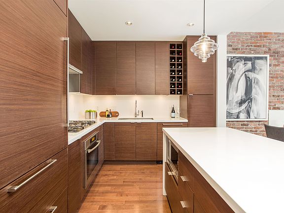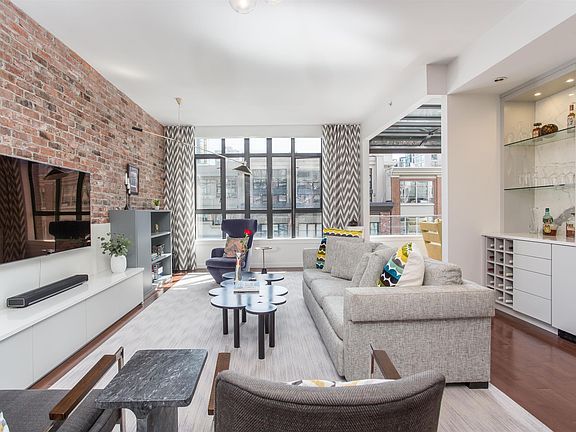 Stylish loft-style residence at this boutique development. An expansive and open plan interior of 1,479 sf w/ custom interior appointments by PlaidFox studio. A large living area features an attractive bar area w/ a marble feature wall, and the dining area is enhanced w/ built-in bench seating & a garage-style roller door. The kitchen is furnished w/ appliances by Miele & Sub Zero, a walk-in pantry, a gas cooktop, a center island & fittings by Dornbracht. A king-size master bdrm w/ walk-in closet & balcony access offers a tranquil retreat. Bthrms are furnished w/ Dornbracht & Duravit, marble counters, primary steam shower & soaker tub. An exposed brick wall, A/C & 10 ft ceilings are also featured. 2 pkg. spaces plus an XL storage incl. Only 12 homes @ this sought-after address.