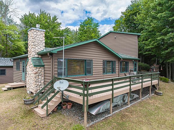 The best of all worlds a found here with this well maintained lakefront property on the Three Lakes Chain. Plenty of privacy with over 2 acres, a rip-rap shoreline, 320 ft of frontage and a level approach from the lakeside deck. The home is equipped with maintenance free exterior siding and has over 3000 sq ft of interior, along with two detached garages/heated workshop. Four bedrooms, two baths, high speed internet, an exceptional find in this market. Start enjoying you lake life now, take a look today!