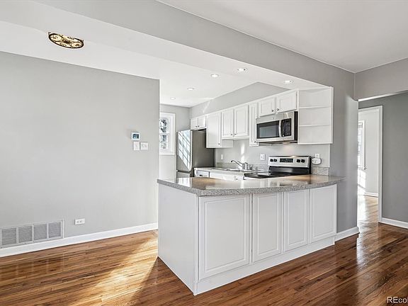 A must see home! A very charming and lovely Mayfair Gardens home. Beautiful Wood Floors throughout. Clean White Tile in the bathroom. Open floor plan with loads of natural sunlight. The home is a low maintenance Colorado Living home with the lawn care and snow removal covered by HOA. This well kept clean and fresh home is Move-in Ready with a great deal of updates in the last few years! New Windows 2019, New Furnace 2020, New Air Conditioner 2020, New Water Heater 2021, New Refrigerator 2022, New Dishwasher 2022