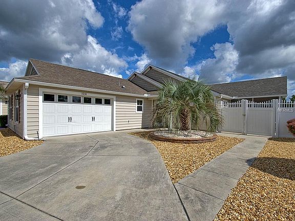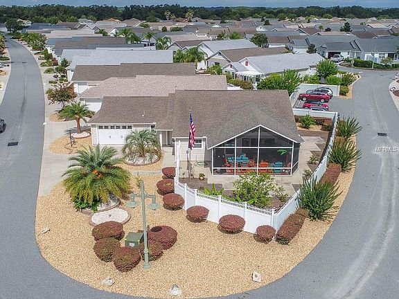 BOND PAID! Don't miss this very unique 3 BR/2 BA Courtyard Villa located on a huge CORNER LOT in CREEKSIDE LANDING in the heart of Lake Sumter Landing! With over $188K in upgrades, this villa has been transformed by its owners into a cozy & comfortable, upscale haven. The exterior sports an expansive LOW MAINTENANCE ROCK YARD w/ STACKED STONE HARDSCAPING, TWO COURTYARD GATE ENTRYWAYS, and a SALTWATER POOL and SPA. The focal point outside is the spacious, recently expanded SCREEN ENCLOSED LANAI w/ a CATHEDRAL CEILING & STAMPED CONCRETE FLOOR that is the perfect place for entertaining. Moving inside, a full lite, DECORATIVE GLASS FRONT DOOR leads the way inside to this extraordinary villa. VAULTED CEILINGS immediately create a sense of spaciousness and the DOUBLE PANE WINDOWS and SLIDING GLASS DOORS allow abundant, warm natural light! Quality upgrades abound beginning w/ decorative woodworking - CROWN MOULDING, WINDOW CORNICES, & DOOR CASINGS. Beautiful PORCELAIN TILE FLOORS flow throughout. The open kitchen is definitely the interior focal point and is exquisitely designed for the gourmet chef w/ TOP OF THE LINE WHITE WOOD CABINETS w/ CROWN MOULDING, SOFT CLOSE DRAWERS, PULL OUTS, BREAKFAST BAR & BUILT IN PANTRY. RAISED COUNTERS are adorned with gleaming CAMBRIA QUARTZ COUNTERTOPS w/ a deep, QUARTZ DOUBLE SINK. The MASTER BEDROOM features ENSUITE MASTER BATH w/ DUAL SINKS, WALK IN SHOWER, and large WALK IN CLOSET! New Roof 3/21, New A/C 6/21. 2008 Two Seat Yamaha Gas Golf Cart Included! Call today! NO BOND!