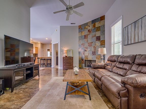 Enjoy island living in this single story up-to-date cottage in Harbor Town. Home has newer roof & A/C and fresh paint inside and out. The open floor plan and soaring ceiling create a spacious living area topped off by a dramatic slate gas f/p. The low maintenance stained concrete floors exist from the front door to back door. Large master suite with coffered ceiling leads to a luxurious master bath with dual closets, separate shower and tub and double vanity. Enjoy sunsets on the river!