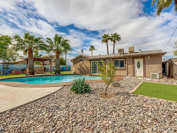 One of a kind renovated, move in ready home, with a pool that shines with pride of ownership for less than $300k in Chandler. Spotless kitchen is a cook's dream with granite counters, sparkling stainless steel appliances, cabinetry with crown molding, lovely back-splash, centered island with breakfast bar, and recessed lighting. The bight and charming interior is complete with 4 bed, 2 bath, & brand new carpet in the bedrooms. The master bedroom features a lavish bath. Outside you'll be treated to a resort like back yard that's an entertainers delight with a huge diving pool and gazebo. Enjoy the 10' RV gates for your toys. Enjoy no HOA, and enjoy no rear neighbor. This is a home you'll be proud to own and share with your friends and family.