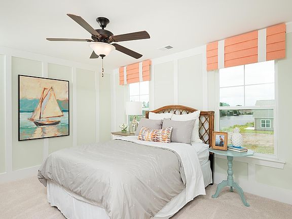 PICTURES ARE A REPRESENTATION ONLY. This home will be ready so you can spend the summer at the beach. So many upgrades, Covered porch, grilling pad with gas line, fully sodded irrigated yard, Fireplace in family room, down stairs primary suite includes tray ceiling, tile five foot shower, linen closet, double bowl vanity, brushed nickel fixtures, large walk-in closet open to the laundry room, office with French doors off the foyer, powder room, utility sink in garage, coat closet, kitchen with gas range, stainless appliances, ceramic tile backsplash, pantry, island seating, two generous bedrooms on the second floor with a shared bath and double bowl vanity and easy access attic storage. Five miles from the beach, one mile from the intercoastal waterway. CLose to marinas, golf, restaurants, shopping, entertainment and medical facilities.