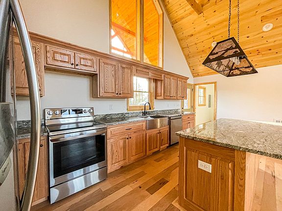 Brand NEW. Now complete, All one level open floor plan with high ceilings covered in beautiful wood. Two bedrooms, one on each side of the great room and both open out onto the deck . Beautiful kitchen with granite counter tops and custom made cabinets. Master bathroom has granite vanity and a walk in tile shower plus granite tops. Stone wood burning fireplace in the great room with gleaming wood floors completes the package.