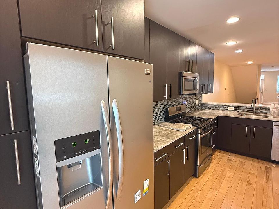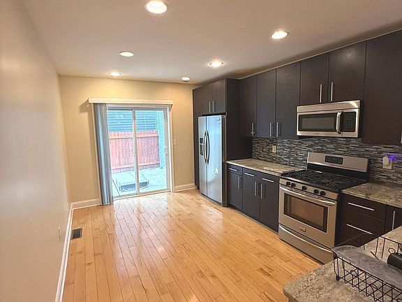 Make your new home in the city at a fantastic price. Newly renovated and spaciously laid out. First floor has hard wood floors and recess lighting throughout. The kitchen has stainless steel appliances and is an eat- in kitchen. Tastefully picked granite counters with over hang where you can place bar stools and enjoy your breakfast. The back yard is fully fenced in on a concrete pad so no lawn work is necessary. Master suite has high ceilings and gets plenty of natural lighting. The en suite has a full stand up shower and double sink. The basement is perfect for gatherings or additional space. Washer and dryer included. Easy access to public transportation!! More photos to come...Come tour today!!