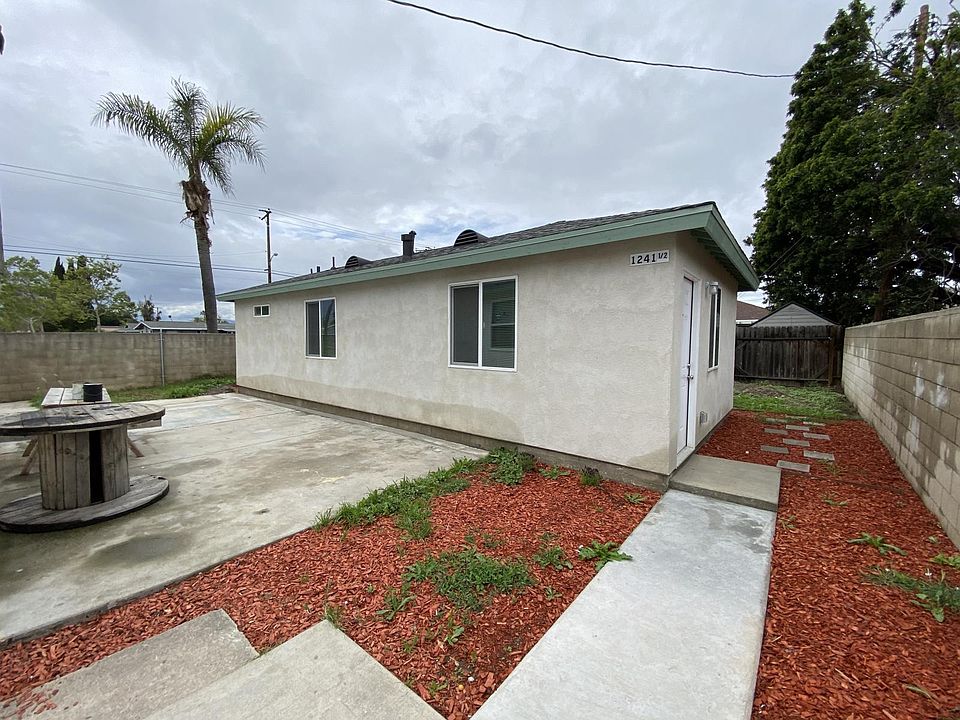 Newer construction. 2 bedroom, 1 bathroom home conveniently located off Bristol in Santa Ana near supermarkets, stores, public transportation and hospitals. This home features, laminate wood flooring, recessed lighting, ceiling fans and interior laundry. NOTE THAT This home is a rear unit on a lot with two homes. This home's address is 1241 1/2. Each home has it's own private entrance and private yard. Available 3rd week of June. 12 Months