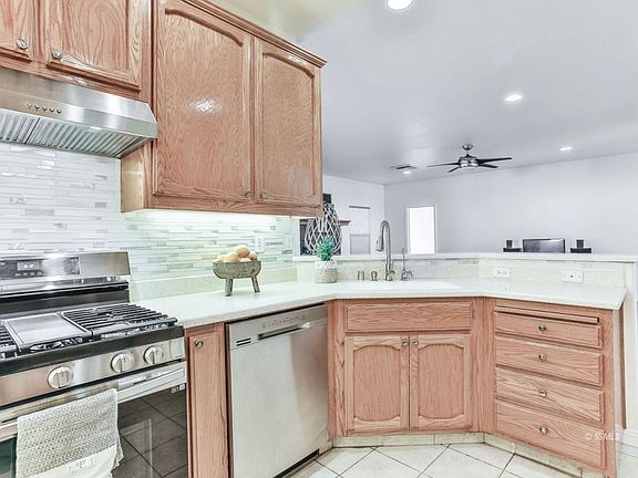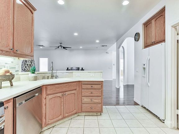 Stunning! Check out this 4 bedroom , 3 bath home in the very popular estates subdivision. This open floor plan with new paint and carpet awaits you. Great kitchen with solid surface counters, tile backsplash, stainless appliances and open bar area. Big open living room with tall ceilings, recessed lighting and fireplace with tile surround. Formal dining area with windows overlooking the front yard. Split floor plan with great size master bedroom on one side and guest rooms on the other. Master bedroom features many windows and big master bathroom with soaking tub, double sinks and walk in closet. Guest rooms include Jack and Jill bathroom with tile shower/bathtub. Beautifully landscaped front and back yard with many mature fruit trees. Retaining wall with outdoor lighting built in. RV parking and outdoor shed. Two swamp coolers to keep you nice and cool this summer. Don't miss out.