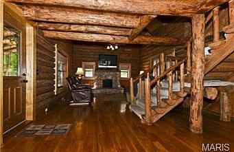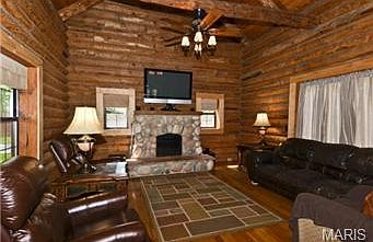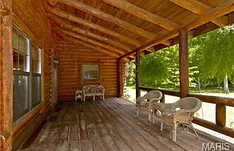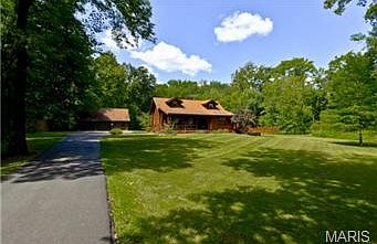 Country living just minutes from highways, schools and shopping. Rustic two story log home nestled on 8.9 wooded acres in St. Charles minutes from Hwy 94/O'Fallon Rd. The land is level with several acres of lawn, and then woods. The interior has an open floor plan with wood flooring, a large kitchen with 2 skylights, dining and family area plus a bedroom and bath on the main level. Upstairs has a master bedroom, additional bedroom and full bath plus loft. The kitchen has smooth top stove, built-in microwave and tons of cabinet and counter space. PUBLIC SEWER, all electric appliances, shared well with 2 neighbors. Above ground pool and deck. Oversized two car detached garage(35x23) with additional storage above(35x10). HSA warranty offered. The setting is spectacular! This is a must see!