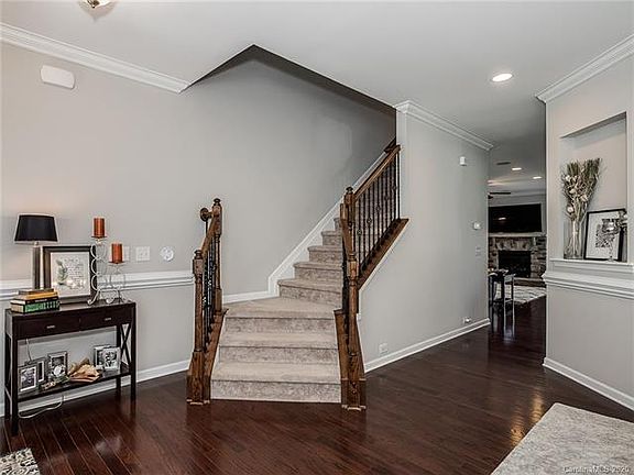 Beautifully designed & meticulously maintained 5 BR, 3BA home in desirable Brookvue neighborhood features charming details and tasteful finishes. This popular model features 9 foot ceilings & hardwoods on main level plus a guest bedroom down w/full bath. Open kitchen/family room concept is perfect for entertaining. Kitchen features custom cabinets, granite counters, marble subway tile backsplash, ss appliances, butler's pantry + large walk-in pantry. Sunny breakfast area opens to backyard patio and rear yard. Stone fireplace in family room w/raised hearth & gas logs. Upper level features spacious owner's suite w/tray ceiling & deluxe bath w/dual vanities, garden tub and oversized stall shower, 3 additional secondary bedrooms all w/walk-in closets + large bonus room & laundry room. In close proximity to Concord Mills for shopping, dining & entertainment plus great schools. Community features include pool, playground & sand volleyball court. Transferable structural warranty included.