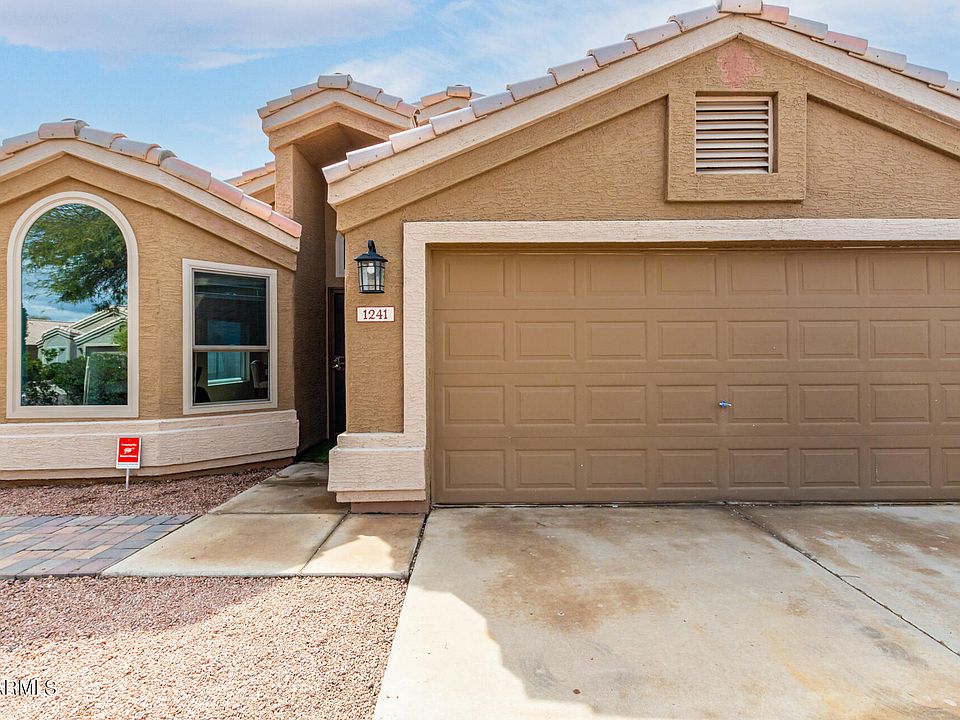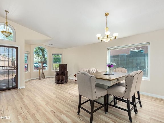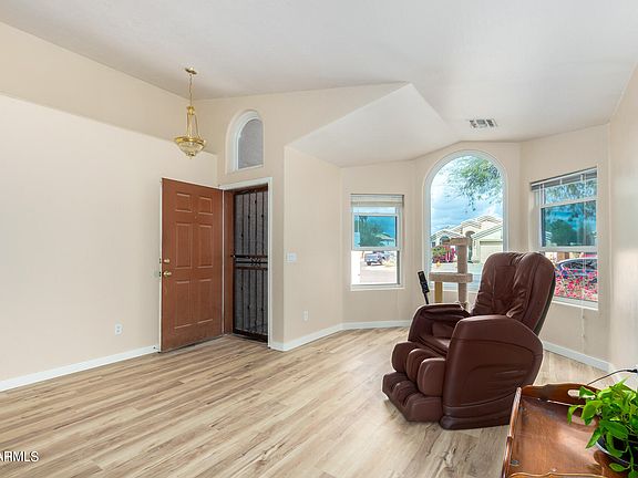 Become the proud owner of this charming home in Chandler! This 3 bed, 2 bath home offers brand new vinyl flooring throughout the entire home, owned solar panels, new AC, new top of the line windows throughout, new tankless water heater, extra outlets in the kitchen, and freshly painted! The bright and airy interior offers vaulted ceilings, a spacious living/dining room, and the huge great room is perfect for entertaining which showcases the inviting kitchen with granite counters, built-in appliances, and an island w/a breakfast bar. The spacious owner's suite features a large walk in closet, en suite w/dual sinks & a walk-in tub. Enjoy relaxing in this serene backyard providing a relaxing covered patio, pavers, storage shed, & grassy landscape. Great location! Close to shopping and 202!